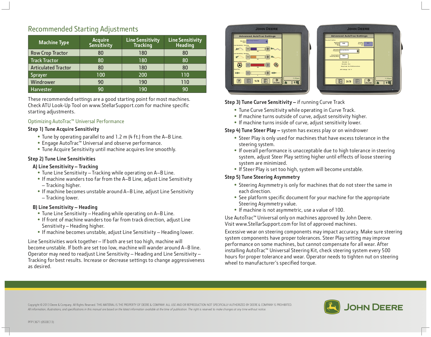 - Tune Line Sensitivity – Tracking while operating on A–B Line.